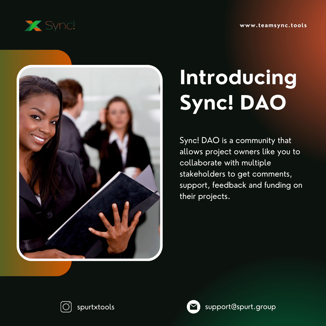 As you already know, Sync! is a digital workspace that allows you to manage your teams and projects, but that’s not all. The Sync! DAO is a community that allows business owners/founders to collaborate with multiple stakeholders to get comments, support, feedback, and funding on their projects.